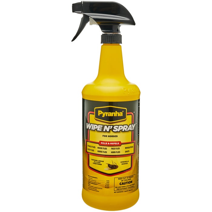 Not for use on humans. 1 Choosing the Right Fly Spray for Horses. Use As A Spray. Do not wet horses skin or exceed two ounces per application. As a top manufacturer of fly sprays barn misting systems and insect control solutions we will continue our commitment to providing our customers with the best quality and most advanced technologies to effectively control their insect problems. SPRAY NOZZLE ASSEMBLY 14 - 45 DEGREE NICKEL PLATED NS TIP. Wipe N Spray may be applied as a fine spray mist to horses for fast paralysis and kill of flies. Pyranha Wipe N Spray is a pyrethrum-based formula that is applied directly on the animal. Pyranha Equine Spray and Wipe Insect Repellent Water-Based Long-Lasting Gallon Pyranha works better than just about any other fly spray Ive used.